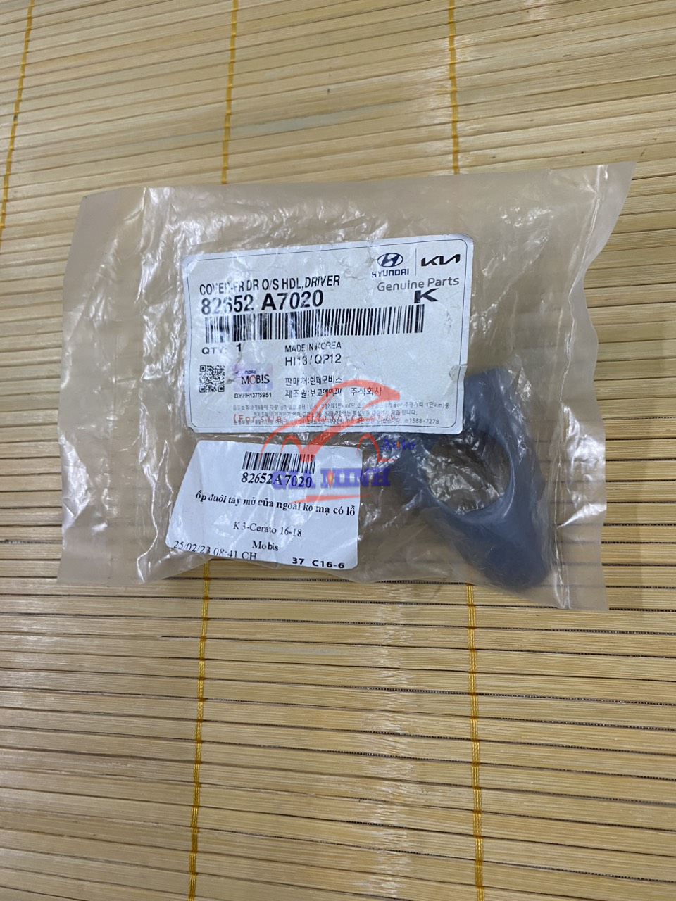 ĐUÔI TAY MỞ CỬA NGOÀI KIA K3, CERATO – 82652A7020 (không mạ – có lỗ) phụ tùng chính hãng Mobis Hàn Quốc, mới 100%, giá tốt.