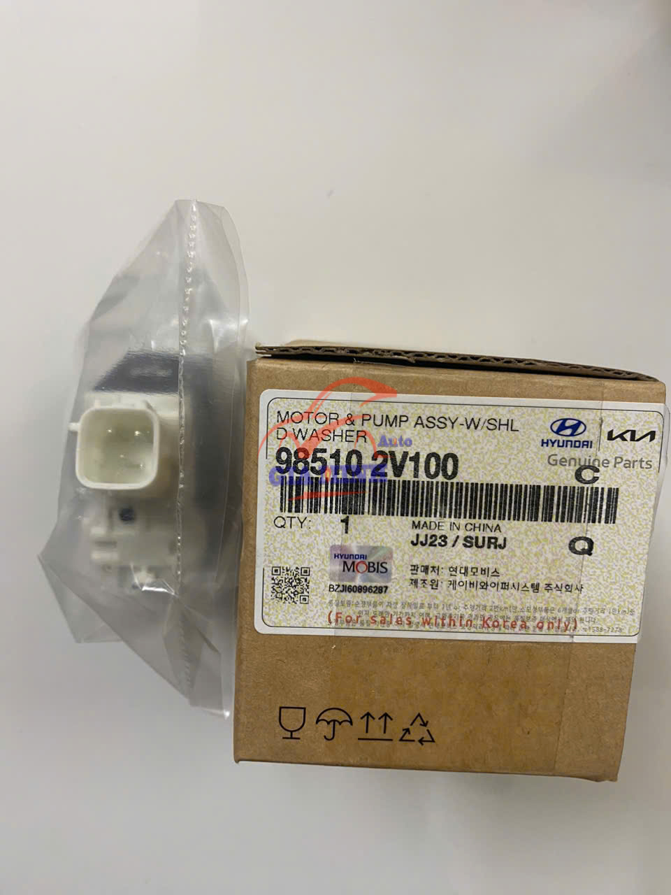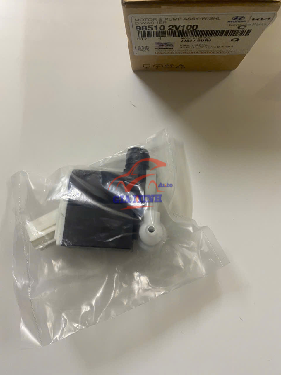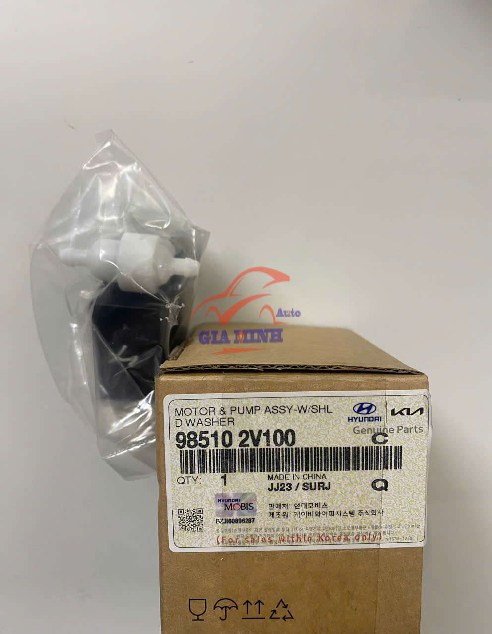MÔ TƠ BƠM NƯỚC RỬA KÍNH HYUNDAI SANTAFE, KIA MORNING – 985102V100 (2 VÒI) phụ tùng chính hãng Mobis Hàn Quốc, mới 100%, giá tốt.