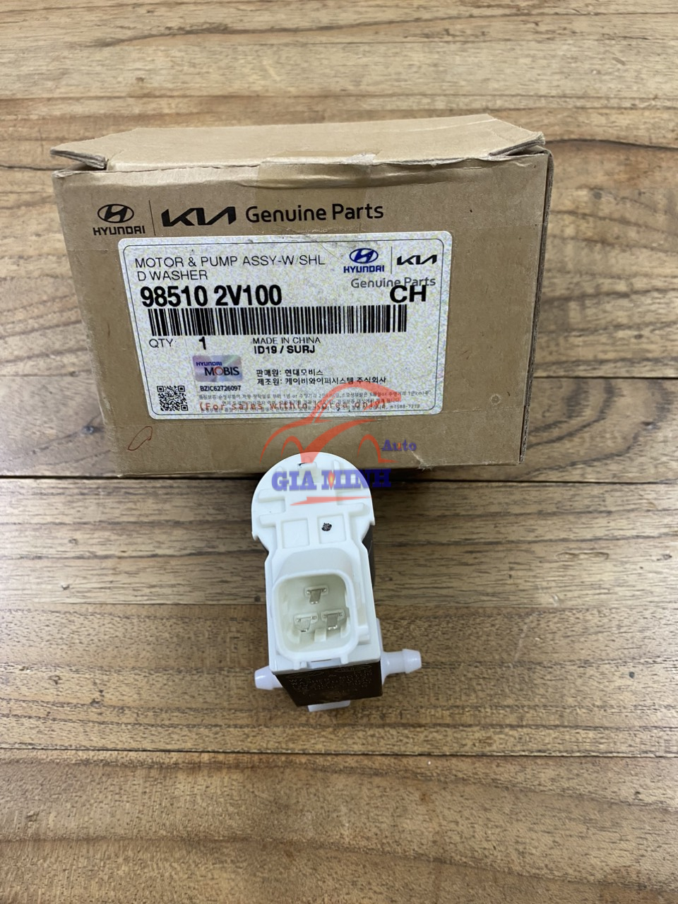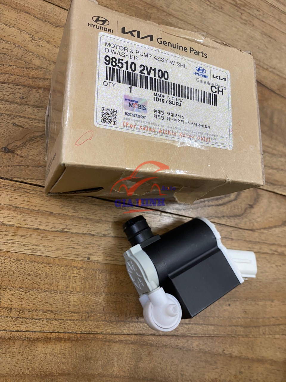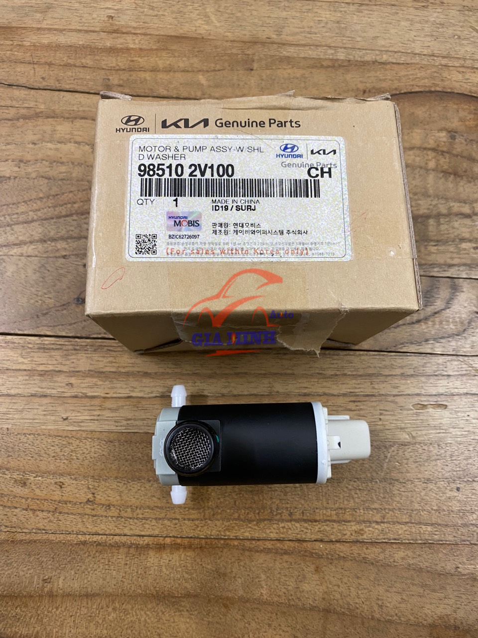 MÔ TƠ BƠM NƯỚC RỬA KÍNH KIA MORNING – 985102V100 phụ tùng chính hãng Mobis Hàn Quốc, mới 100%, giá tốt.