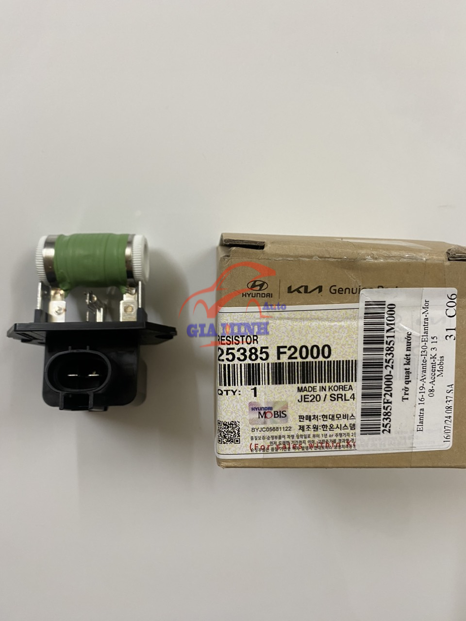 TRỞ QUẠT KÉT NƯỚC KIA K3, MORNING, HYUNDAI ELANTRA, AVANTE, ACCENT, I30 – 25385F2000 (253851M000) phụ tùng chính hãng Mobis Hàn Quốc, mới 100%, giá tốt.